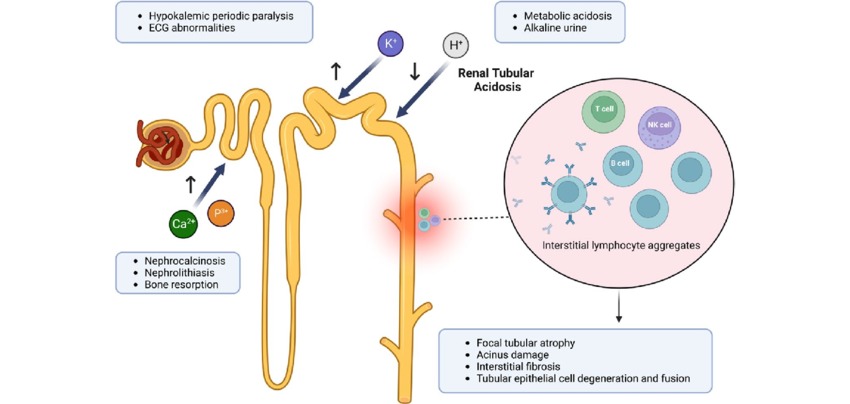 Tubulointerstitial disorders refer to a group of kidney conditions that primarily affect the tubules and interstitial tissue of the kidneys. The tubules are small structures within the kidneys responsible for reabsorbing water, salts, and nutrients from the filtrate (the fluid that becomes urine). The interstitial tissue is the space surrounding the tubules that supports kidney function.